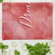 Bokeh style red gradient texture. text. tea towel