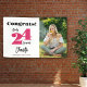 This graduation banner features the graduating year in big, bold, dark pink text and is paired with a handwriting style text. The design offers a vertical photo for your favour senior pictures. Say congrats to the class of 2024 graduate with this modern personalised photo banner.