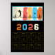 Celebrate your love for golf with this dynamic 2026 calendar poster featuring a vibrant brushstroke backdrop and a striking golfer silhouette. A heartbeat line connects the swing to a golf flag, symbolizing passion and precision. The full-year calendar layout in bold yellow on black adds clarity and style—perfect for sports enthusiasts and modern design lovers.