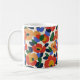 A vibrant and bold abstract floral design featuring large red, orange, and blue flowers with green and navy leaves on a cream background. The playful shapes and bright colours create a modern, artistic aesthetic perfect for textiles, wallpapers, or decorative prints.