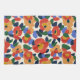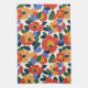 A vibrant and bold abstract floral design featuring large red, orange, and blue flowers with green and navy leaves on a cream background. The playful shapes and bright colours create a modern, artistic aesthetic perfect for textiles, wallpapers, or decorative prints.