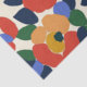 A vibrant and bold abstract floral design featuring large red, orange, and blue flowers with green and navy leaves on a cream background. The playful shapes and bright colours create a modern, artistic aesthetic perfect for textiles, wallpapers, or decorative prints.