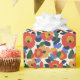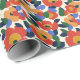 A vibrant and bold abstract floral design featuring large red, orange, and blue flowers with green and navy leaves on a cream background. The playful shapes and bright colours create a modern, artistic aesthetic perfect for textiles, wallpapers, or decorative prints.
