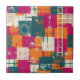 A vibrant abstract pattern ceramic tile featuring energetic blocks of magenta, teal, orange, and distressed cream, arranged in a dynamic, overlapping grid. Rough brush textures and bold streaks create a raw, urban edge, while hand-drawn circular line motifs add an artistic, expressive touch. This design is perfect for those who love modern art, street-style, bold, and statement that need a striking, contemporary aesthetic.