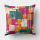 A vibrant abstract pattern throw pillow featuring energetic blocks of magenta, teal, orange, and distressed cream, arranged in a dynamic, overlapping grid. Rough brush textures and bold streaks create a raw, urban edge, while hand-drawn circular line motifs add an artistic, expressive touch. This design is perfect for those who love modern art, street-style, bold, and statement that need a striking, contemporary aesthetic.
