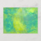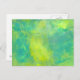An acrylic abstract painting. This painting has a rough weathered grunge texture with a combination of greens and yellows in bold brushstrokes, scrapes and streaks which give it a vibrant lively atmosphere.