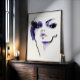 The piece is a contemporary take on beauty, perfect for a makeup studio, an avant-garde art space, or a personal area dedicated to fashion and self-expression. The vivid purple hues are both regal and edgy, offering a modern twist on traditional portraits.