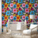 Bold and Bright Red Yellow Blue Florals Wallpaper