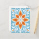 Energetic orange blossoms float over calming sky blue, evoking a fresh, breezy floral pop.