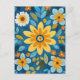 Large, stylised petals in golden yellow sit against cool cerulean in a sunny, coastal-inspired flat floral pattern.