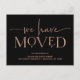 These seriously modern moving announcements feature elegant, ornamental faux rose gold text on a black background colour for a fresh new look that is still timeless and classy. A stylish way to let friends and family that you have moved to a new home!