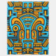A bold and vibrant geometric wall art design inspired by tribal and abstract motifs. The artwork features striking shades of turquoise blue, golden yellow, and deep black, arranged in a symmetrical pattern that feels both modern and timeless.