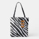 with a bold animal print in zebra style this bag is perfect both for work and for play. One side says Work and one side says Play. Contrasting colours in text and background makes it stand out. And font with a dark shadow makes the words pop. For all who can resist a animal print.