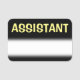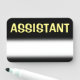 This bold volunteer dry-erase name tag style badge design features the message "ASSISTANT". It also features an area where a volunteer’s name could be written using a dry-erase marker. A name tag style badge like this could possibly be worn to show that a person is an authorised volunteer or assistant at an event. [~Z0000359]