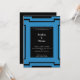 The art deco frame is intricately detailed, with a geometric pattern that adds depth and dimension to the invitation. The bold black and blue colour scheme creates a striking effect that is sure to capture your guests' attention.