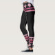 Make a statement with these eye-catching black and pink graphic leggings. Featuring bold geometric patterns—diamonds, waves, and zigzags—strategically placed around the waist and lower legs, these leggings offer a unique blend of modern style and playful design.