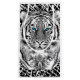 A bold blue eyes wild Tiger face Portrait in black and white Style design.