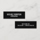 Bold Black and White Business Card featuring information in bold sans serif font style.