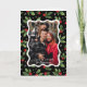 Bold Black Christmas Holly Wavy Frame Photo Holiday Card