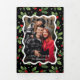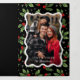 This bold and colourful design will make a memorable statement this holiday season! This festive card features a single portrait photo template with a deep red and green holly pattern and wavy white border on a black background. The panels feature additional photo templates, complementary graphics and editable text fields.