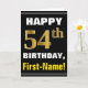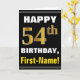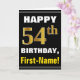 Bold, Black, Faux Gold 54th Birthday w/ Name Card