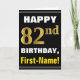 Bold, Black, Faux Gold 82nd Birthday w/ Name Card