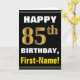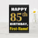 Bold, Black, Faux Gold 85th Birthday w/ Name Card
