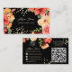 Complete your professional brand with this beautiful bold Makeup & Hair Stylist business card. The front features a vibrant hand painted bold watercolor floral design in rich reds, oranges, and greens, creating a warm and inviting look on black. Gold foil confetti accents add a touch of luxury and sophistication. The back showcases your contact details and a scannable QR code for easy access to your portfolio and price list, add your logo and social media.