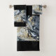 Black Towel with Bold Black Gold & White Abstract Border (White back)