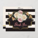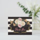Bold Black, Ivory Stripes, Florals Thank You Postcard