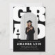 Celebrate her big achievement with this bold and playful graduation invitation, featuring a retro-inspired "GRAD" text backdrop in large block letters and a modern arch photo cutout. The Black and white colour scheme gives it a fun, feminine touch—perfect for high school or college graduates. Customise with her name, graduation date, and event details. A standout way to invite friends and family to the celebration!