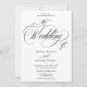 Chic and elegant black and white all in one calligraphy wedding invitation with rsvp, accommodations, details, and more info. With a beautiful brush calligraphy script.