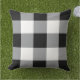 A bold black and white outdoor pillow with a large-scale gingham check pattern. The oversized black check brings dramatic, modern style to patio furniture, deck seating, or covered porches. A striking, graphic pattern that makes a confident statement in any outdoor space.