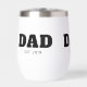 This steel stemless wine tumbler features a bold black serif font that says 'Dad', which you can swap out for a different (short) term or name, followed by the established line, where you can add the year you became a father. All colors and elements can be edited in the Zazzle design tool. ••• For more Father's Day gifts, visit my store Zazzle.com/Yeah_The_Boys ••• For custom orders, message me on Zazzle