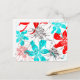 This fun design features bold, colourful blossom silhouettes and outlines in red, turquoise and black, on a white background.