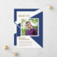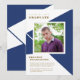 This graduation announcement features the clean lines of blue and white triangular colour blocks with a placeholder for your photo. A bold and modern graduation announcement for the bold and modern graduate!