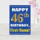 Bold, Blue, Faux Gold 46th Birthday w/ Name Card