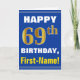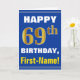 Bold, Blue, Faux Gold 69th Birthday w/ Name Card