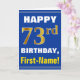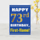 Bold, Blue, Faux Gold 73rd Birthday w/ Name Card