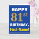 Bold, Blue, Faux Gold 81st Birthday w/ Name Card