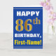 Bold, Blue, Faux Gold 86th Birthday w/ Name Card