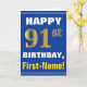 Bold, Blue, Faux Gold 91st Birthday w/ Name Card