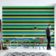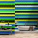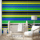 Bold Blue, Lime, & Yellow Striped Wallpaper