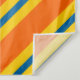 Bold pattern in colours of blue, yellow and orange diagonal stripes.