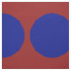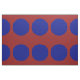Stylish geometric fabric features bold blue polka dots on a dark red background.