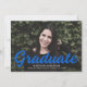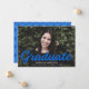 Simple and stylish graduation announcement featuring the graduate's horizontal photo with "Graduate" in a bold blue script. Personalise the photo graduation announcement by adding the graduate's name, school name, and graduation year. The announcement reverses to display a blue and white geometric arch pattern.