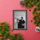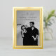 Modern wedding save the date card featuring a simple yet elegant design with your details over your favourite vertical photo, inside of a double border. The double border is printed in real foil and all text on the front may be changed to foil in the design editing tool.