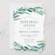 A bold watercolor botanical themed rehearsal dinner party invitation featuring watercolor botanicals wrapping your unique party details in dark teal font.