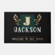 Bright bold Family Name Monogram Welcome Mat. Lovely fall floral branch design with bold initial monogram family name. Welcome and est. date