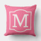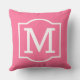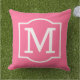 A bold outdoor pillow featuring a white monogram initial inside a decorative bracket frame on a bright pink background. The oversized serif letter and elegant notched border bring playful, feminine energy to patio furniture, poolside seating, or garden decor. The initial is fully customisable.